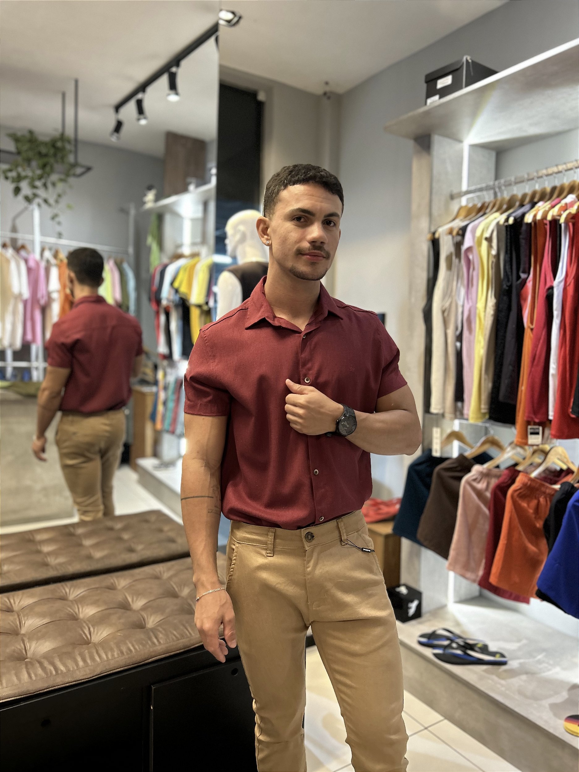 Camisa em linho vinho